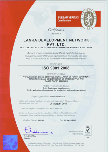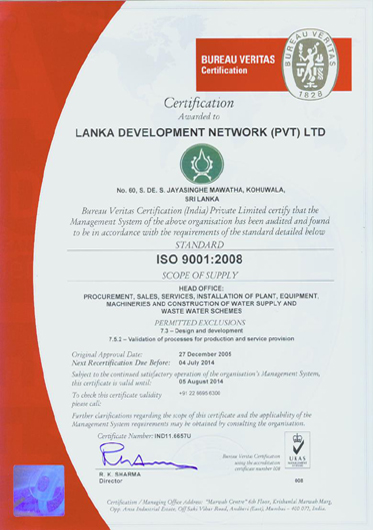 Based on the excellent performance of our company, we were awarded the ISO 9001:2000 in December 2005. There by, we got the privilege of the foremost Electro-mechanical company in Sri Lanka to get this award.